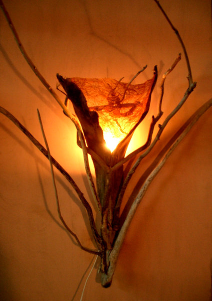 ・材料:流木、中間スイッチ付コード、40W黄色球