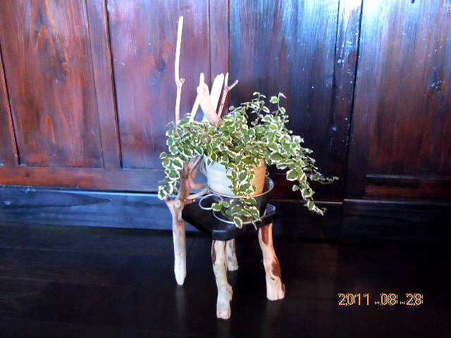 【仕様】 ・サイズ:約横13cm×奥13cm×高44cm ・材料:流木 ・その他:座板は着色してニス仕上げになっています ※観葉植物は含みません |