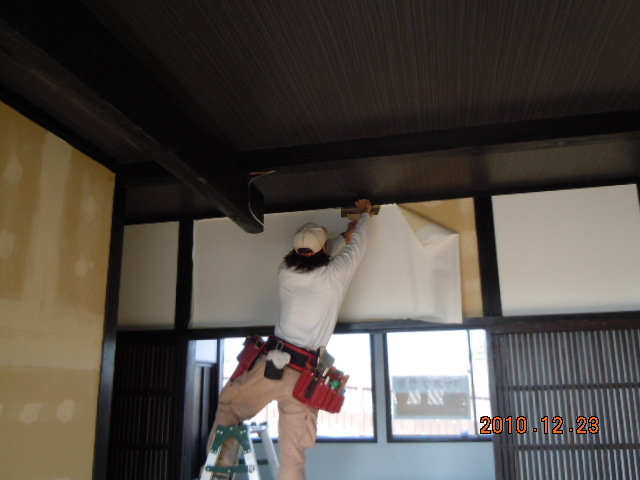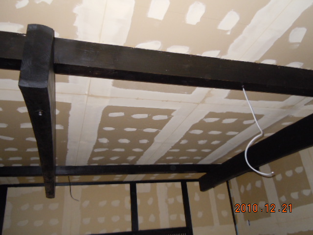 壁の工事です!大工手間を削減するために私が土曜、日曜を利用して下地を造作しました。 結果、でこぼこな個所もありまして…(TT) 下地の上にせっこうボードを張っていきます。 ボードを止めるためにビス止めしていきます(ちょっと多めに!)。 でこぼこの個所は大変でした(汗) なんじゃかんじゃでなんとか張り終わりました(涙) 問題はそこからです。 クロス工事に入るのですが私はさすがにクロスは貼れません。 知人からクロス職人を紹介してもらいました。 とびきり腕のいい職人を!!(本当です) その職人さんが現場を見て一言! 「こりゃ〜やりがいがあるばい」 あきらかにいやみだと思います(笑) ビスは多めに打ちこんであるし、下地が悪いせいかでこぼこしてるしで…。 ましてや隙間も…。 しかし、さすがプロです。 一言も文句も言わず、もくもくとパテ打ちをしていきます。 下地の悪さもなんのその! あっという間にフラットな面にしていきます。 そしてクロスを貼っていくのです(感心) だんだん家らしくなってきました(涙) |