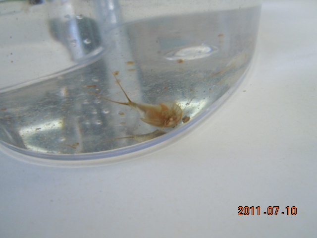 御存知でした(^^)脱皮を繰り返しながら確実に大きくなっています(^^) 今回は脱皮の抜け殻と食事のシーンを撮影してみました。 脱皮をするたびに1.2倍くらいの大きさになります。 驚いたことに尻尾の先まできれいに脱皮するのですね(写真参照) できれば標本にして取っておきたいくらいです。 あと食事の仕方が面白いです。 金魚の餌みたいのを一日3〜4個くらい与えます。 下に沈んでいくと待っていたかのように飛びついて餌の上に乗っかります。 そのまま食べるのかと見ていますと餌をかかえてくるっとひっくり返ります(写真参照) まるでラッコですな(笑) あと正面からの顔を撮ってみました。 愛くるしいお目目がかわいいですな(^^) 話は変わりますが、こういう観察用(特に動く被写体)にはばかちょんカメラは向きません。 ピントが合わせられないんです。 一眼レフが欲しくなりました… |