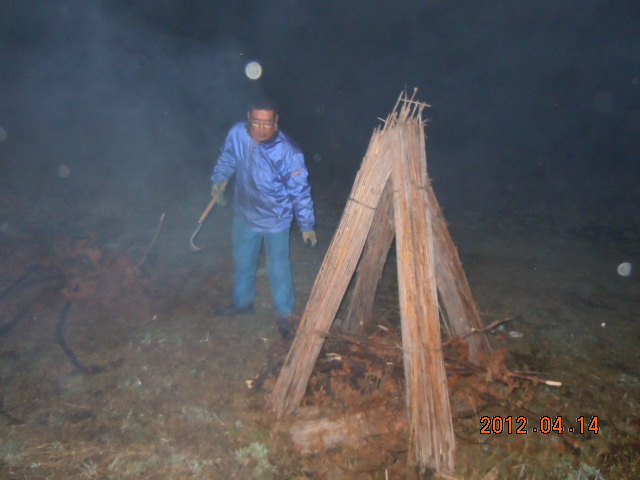 久々の…キャンプ仲間の村上氏と行ってきました! その日、昼間は結構暖かく「こらぁ〜よかナイトキャンプ日和ですな」と… しかし夜はかなり冷え込み防寒着も用意していきましたが寒かったです。 でもそこは焚火のスペシャリスト「炎の大魔人村上氏」がついてます(^^) 写真を見ればびっくりでしょ! 自分より大きいやぐらを組み燃やします(恐怖) 一見すればどんどやですな… それよりも手に持っている「ナタ」が似合うことといったら(笑い) こんな人そういませよ(感心) おかげで暖かいナイトキャンプになりました。 と言うより防寒着(ナイロン製)が融けそうでした(熱い!) まぁ〜なんじゃかんじゃいっても焚火しながら語らい酒を飲むのはいいもんです(本当) 日頃のストレスや悩みも焚火といっしょに燃やしてしまいます(笑い) またいくぞ〜 |