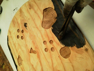 【オリジナルキャットタワ〜】私は猫…その2大体のイメージはできました(^^) 今日は基礎となる土台(底板ですな)ば作っとです 四角の板を丸く(楕円になりましたが…)切りました(汗) それだけでは面白くないのでちょっと遊び心を… 猫の足跡をイメージしてみることに(微笑) 白いタイルを埋め込むことにしました 最初は足跡そのものにしようと思いましが… タイルの大きさが合わず(TT) 結果、写真のように… 機械(トリマー)で穴をあけ、そこにタイルをはめ込むんですね 簡単そうで意外と難しかっです(汗) しかし、妥協はしません すると決めたら最後まですっとです(気合) 作業は順調?に進みまして着色です オイルステンのウヲルナット(まぁこげ茶ですな)で… 木目が出てなかなかよかっです 最後にニスを塗り、タイルばはめ込みます こんな感じで〜す(^^) 来週は途中の棚ばつくります! |