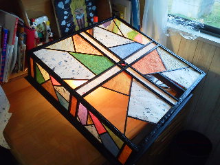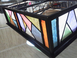 叔母の期待…格闘編和紙の貼り込み作業に入ります! 型を合わせて和紙を切り取っていくんで… これがまた地道な作業なんですね(−−) でも楽しいです(^^) 問題は色合わせです! となりと色がかぶらないように そして同じパターンにならないように… なおかつ全体をイメージしながら貼っていきます(地道に…) 私としては位置ごとに紙の厚み、配色を変えています ランプに近い中心部は明かりが強いので紙を厚く… 色も濃い目にしたりとか… ち〜とは考えながらしよるつもりですたい(^^) 皆様どうでしょうか? 「大正ロマン」なるものを感じ取っていただけましたでしょうか? でも仕上げはこれからなんです! ランプの個数、何ワットにするのか… また電球を白熱球にするのかクリア球を使うのかで演色性が全く変わってくっとです(−−) ここは自分の感性を信じて(^^) 次回はいよいよ最終章です! 楽しみにしとってください |