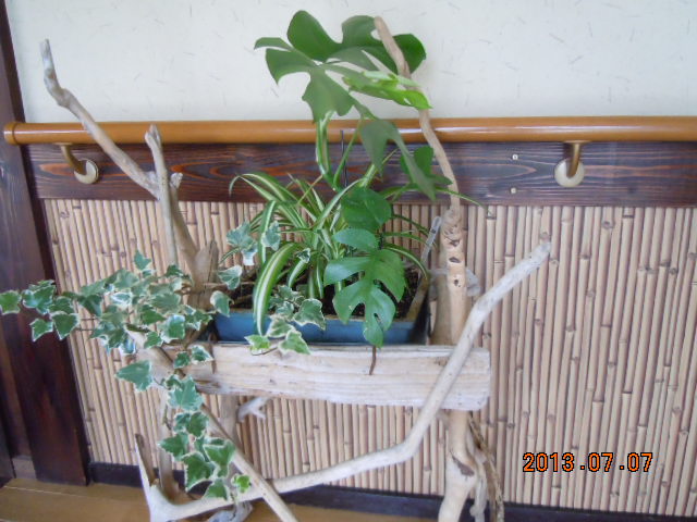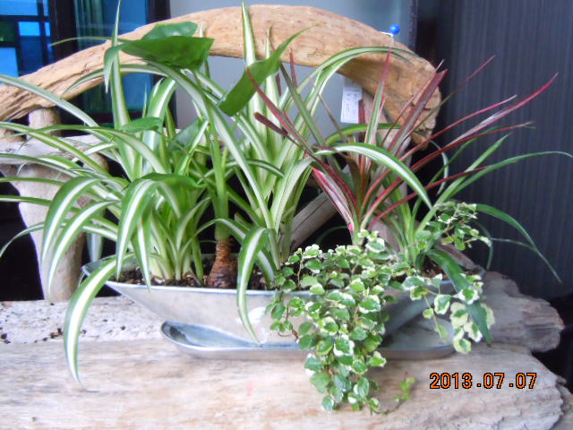 観葉植物編…その後その後を報告します! まぁ〜そんなたいそうなものではなかとです… 寄せ植えちゅうやつに進化したぐらいです(^^♪ 一言に寄せ植えといっても簡単じゃなかとです… 直物によっては日光を好むものもあれば また日が当たりすぎると日焼けしてしまうものもあっとです 水分に関してもあまり水やりを必要としないものもあれば 朝夕必要なものもあります その辺を考慮して組合せば考えんといかんとです(・_・;) 最初の頃は何も考えずに植え込んでいました… 結果は2週間くらいで出ます! なにも言わずに枯れ始めます(T_T) 説明書ば読むと「育て方は簡単です」とみな書いてあっとです… 簡単? どこが?? そんななんじゃかんじゃの繰り返しでした でもおかげさまで写真を見てください! なんとなく様になったでしょ(^_^)/~ 家族の目を癒してます(ふっ) 流木の作品と組み合わせて飾っています 本当は家中を植物で埋め尽くしたいくらいです!(^^)! これを女房に話したら一言 「虫がわいたらどうするの?」 そっちかい! 観葉植物で虫がわいた話なんか聞いたことなかとです… やっぱり癒しは必要ですよね(゜-゜) ひそかに観葉植物増産計画を進めています(拳) もちろん女房には内緒です(-_-;) 癒された〜い(^o^) |