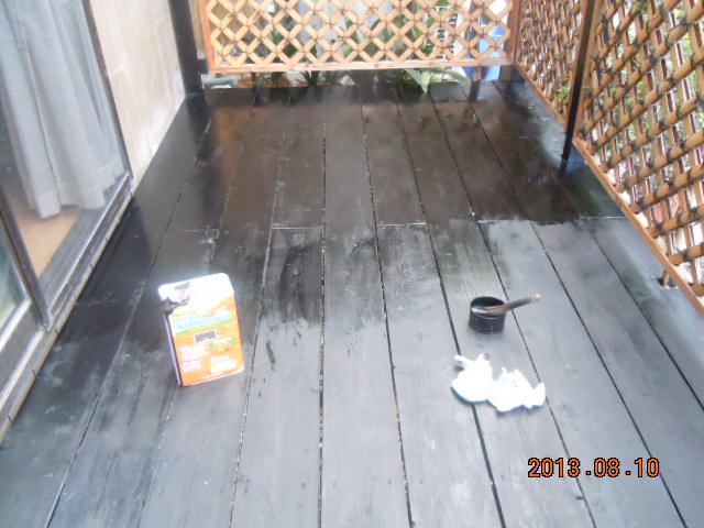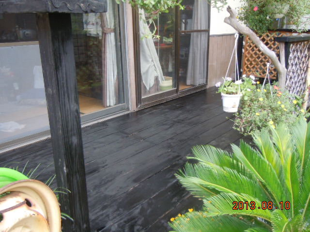 ウッドデッキのリフォーム編…後編でも暑さに負けずデッキば仕上げんといかんとです<(`^´)> 前回、一回はペンキ塗りをしておりました♪ 今回は二回塗りで仕上げます 一回塗っただけでは塗料を吸い込んだだけです やっぱ完全に乾いてから二回塗りばせんといかんとです! 全然持ちが違います(^_^)v やっぱり手間をかけただけですな… 休みと言うのに朝6:00に起きて作業開始です(;一_一) 気温が上がる前に勝負です! でも、その時点ですでに30度ありました(-_-メ) 「俺がやらねば誰がやる」と奮起して… 実際、私しかいませんけど(T_T) パートナーは熟睡、いや爆睡してます(゜-゜) なんとかデッキの二回塗りも終わりました(^^♪ 汗が滝のように流れ落ちます 首に巻いたタオルが重いです… 次は台やチェアーを仕上げます なんと、チェアーは子供たちが中学生の時に工作で作ったものです(^_^)v よくできています さすが私の子供です 手を抜いていません<`〜´> 今回はかわいらしくしようかなと… ちょっとカントリー調にしてみました(^^♪ 台も傷みが激しかったので再塗装を… 見違えりました(^_^)/~ 庭の裏口も再塗装で♪ BGMはビフォーアフターです♪♪ どういうことでしょう 庭に命が吹き込まれました♪ 母が毎日、ガーデニングするのが楽しくなるでしょう デッキのリフォームは終了です シャワーを浴びる際に体重計にのってみると… なんと2キロも体重が減っていました(@_@。 これを女房に言ったら 「私もやせてみた〜い」と… 私は思いました… 爆睡しててやせるやつはおらんばい(-_-メ) |