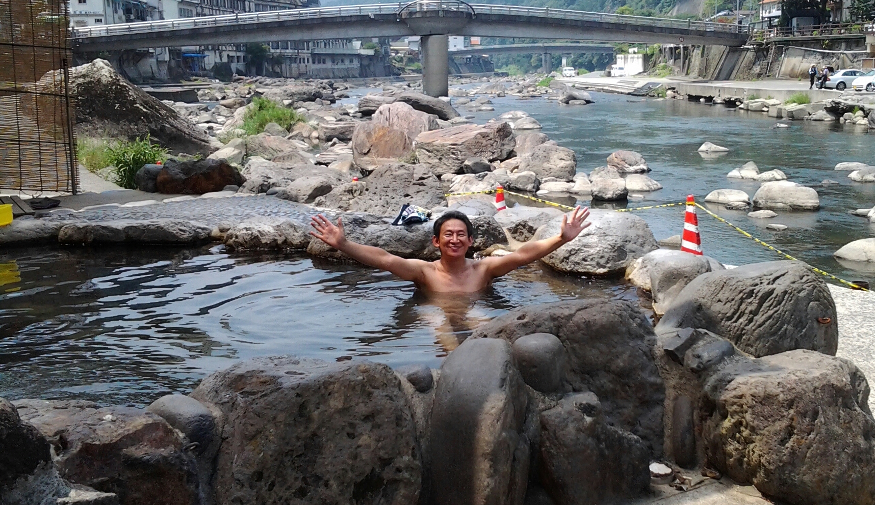 露天風呂 わぁ〜お!「天ケ瀬温泉共同露天風呂」で〜す♪ これは玖珠川の河川敷に点在する共同露天風呂です 「駅前温泉」「益次郎温泉」「薬師湯」「神田湯」「舞鶴の湯」の五か所です その中の「神田湯」に入ってきました(^_^)v なぜ、ここを選んだか? こんどの休みに温泉に行こうと女房と話しておりました ネットで調べてもピンとくるものがなく… セブンで「九州日帰り温泉」という冊子を購入しページをめくってみると… 目に飛び込んでくるものが!(^^)! これは!… よくテレビとかに出てくる究極の露天風呂だ(じぇじぇじぇ) 河川敷の露天風呂ではないですか! これしかない<`〜´> 朝8:30に出発です ひたすら国道3号線を登ります… 高速は使いません(女房の指示です) カーナビだよりになんとか昼前に現地到着(^^♪ ありましたよ… 河川敷に(^o^) 写真のとおりです! 入湯料100円!! 人目も気にせず裸になり入湯(゜-゜) 最高のロケーションでした 観光案内に聞くと最近は若い女性も入りに来るとか… 男性の方が躊躇するそうです しかし、話のたねには最高ですな 次は女房が選んだ「山荘 天水」に行きました ここはここで施設が素晴らしいの一言です(^_^)v 写真がないのが残念です… ゆっくり温泉を楽しんできました ロケーションの良いところでちょっと休憩(^o^) 珈琲タイムです♪ 道の駅でかった団子を焼いて食べました プチアウトドアですな あぁ〜楽しかった 是非、天ケ瀬温泉に足を運んでください 話のたねにはなりますよ(^_^)/~ |
