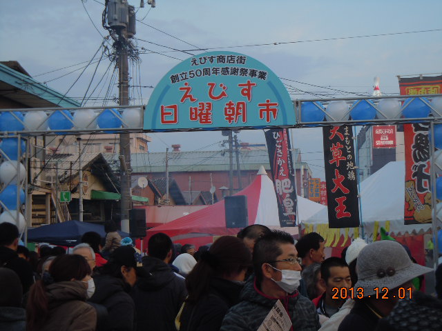 年に一度の感謝祭!どこから聞いてきたのか「えびす祭り」に行きたいと(゜-゜) 「えびす祭り…」初めて聞く言葉です??? 話を聞くと市内に田崎市場というのがあります 魚、野菜の総合市場です そこで年に一回、朝7:00から一般向けに安く販売しているのだと… 女房の話です、ガセネタではとネットで調べてみました たしかに市場主催で「えびす祭り」なるものが行われていました かなりのにぎわいみたいです(^^♪ では行ってみるかと♪ 私は朝市なのでとにかく早く行こうと気合を入れていました ところが女房はなにをそんなに意気込んでいるの?みたいな感じで… 家を7:10に出発しました 7:20に現地到着です すでに現地駐車場はいっぱいです… 人がうようよ歩いています(;一_一) 女房を見ました… 顔が引きつっています(;一_一) あせっているの感じられます… 私は一言「もう品物ないかもね…」 女房がキッと私をにらみました(-_-メ) やっと駐車場に車を置いて市場に向かうことに! するとどうでしょう! 女房の歩くスピードが速いこと(@_@。 こんなに早く歩けるんだ… 一目散とはこのことですな(^o^) 市場は凄い人でした… でも理由はわかります 魚とか野菜が安いんです! 見て歩くだけでも楽しいです♪ 女房は正月用品を買っとくんだと息巻いています<`〜´> 数の子、酢だこなど… 女房は買う人! 私は荷物持ち(T_T) 人ごみの中を両手に荷物を下げて女房に必死についていきます(・_・;) 腕が… 彼女の特技を発見しました! 目標を定めたらどんな人ごみの中でもすいすい進んでいきます!! トマホークみたいな人間だなと… たのむから待ってくれ! 私は必至でした(-_-メ) でも楽しかったですよ♪ マグロの解体ショーとか伊勢海老の味噌汁の販売とか… なんじゃかんじゃで市場内を2周回ってしまいました(^_^)/~ 帰り道に女房が… 「来年は6:00に家を出ようと思うの!」 「そして下見をして買うのを品定めするわ!!」 もう気持ちは来年に向かっています(._.) 私は思いました… 腕立て伏せの階数を増やさなければ<(`^´)> |