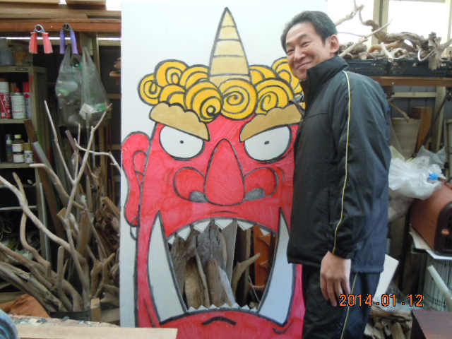 ママの依頼(鬼編)女房からです なにを? 聞くと勤め先で2月に節分のイベントをすることになったそうです その時、豆まきにの代わりに玉入れの要領で鬼の口にボールを入れるようにしたいと… 玉入れ? 鬼の口?? またわけのわからん事を言いよる(@_@。 図に書いてみろと… 女房は絵がへたくそです(-_-;) でも大体のイメージはつかめました 絵は娘の描かせることにしました 下の娘が今年成人式で帰ってくっとです(^^♪ 私にビジュアル的なセンスはありません 女房よりもちぃ〜と描けるくらいです… しかし娘も大変だったと思います… 成人式で帰ってきたらいきなり鬼の絵を描かされて… でも親が言うのもなんですが娘たちはうまいとです たぶん祖父の血を引き継いだのでしょう なんとか絵はできました でもこれを立たせなければなりません 引き受けたからにはがんばります<(`^´)> 来年も使えることを想定して頑丈に! 木材で補強です でも重くなってはいけません そこのところがポイントです 家にあった材料を電気のこぎりで加工したりして… なんとか様になったと思います(^_^)v 原物をみて女房の満足そうな顔… 目に浮かびます! 職場に持って行ったときの「どや顔」が(゜-゜) |