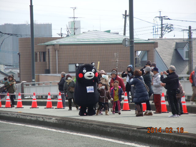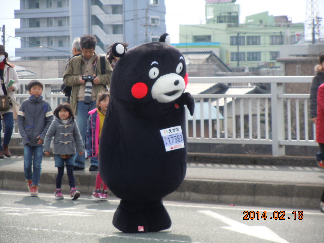 第三回熊本マラソン大会(^_^)/~参加者12,000人! 毎年、参加者が増えています(^^♪ それに比例するように応援者も増えています♪ 沿道を埋め尽くす勢いです 毎年応援しておりますが回を増すごとに盛り上がっています いやぁ〜トップ集団の選手は早いですね〜 あっ、来た!と思ったら目の前を矢のような速さで駆け抜けていきます(@_@。 たぶん一般人が全速力で走るのと変わらないかも… びっくりしたのが川内選手です… そう、あの公務員ランナーの「川内選手」です 前回から参加されています(感謝) トップで独走状態でした… 白バイに先導されて! すごいのが沿道の応援者の声援のすごいこと<`〜´> 芸能人(アイドル)並みの声援ですな… とにかく女性の「黄色い声」がすごいのなんの(^_^)/~ ちょっと感心しました(-_-) でも堂々とした姿は素晴らしいの一言です 今回のこのレースで「よく頑張ったで賞」をあげたい人が… 人とはちょっと違うような気がしますが なんと熊本のゆるキャラ… そう「くまもん」です なんと走っているじゃないですか(・_・;) あの着ぐるみを着て… 今回は10kmコースを走るそうです 私の地点は4kmくらいですか… あと6kmもあるのか… すでに歩いてる状態です それもふらふらしながら(T_T) 中に入っている人は市職員でしょう… 休日手当がどうのこうのじゃないですね たぶん来年は同じ人じゃないでしょう(-_-;) でもがんばってください! やっぱりスポーツはいいですね♪ 人に感動を与えます 来年も楽しみにしています(^_^)/~ |