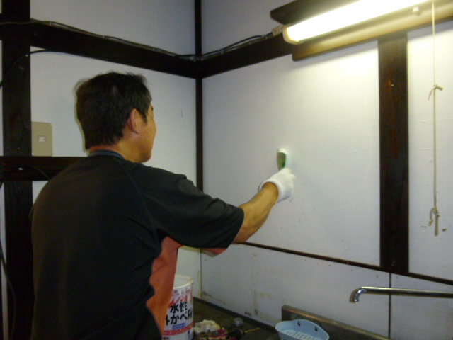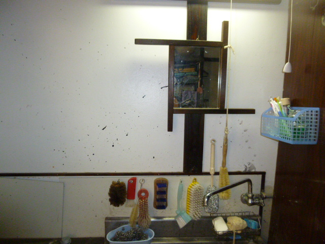 ちょっとメンテを…壁? アトリエの流しに目をやると(゜-゜) ん? 確かになにか着いています… よく見るとペンキですな… そっか(;一_一) 塗装作業が終わったら筆を洗います その筆をピッピツっと振って水を飛ばすんですな その時のやつですばい(T_T) 筆を洗うときは目線は下です 壁には目が行きませんでした でも毎日私はここで歯を磨き顔を洗います… 気が付かんかったどです(・_・;) 女房に指摘されたとがちょっと悔しかったとです(ちっ) たしか白ペンキがまだ余ってたはず… 在庫を探し作業に取り掛かります 思い立ったらすぐすっとです<`〜´> ちょちょっとやっつけます あっという間に綺麗になりました(^^♪ 女房に報告です 見て!綺麗になったでしょ(^_^)v 「そうね、すぐやるのはあんたのえらいところよね」 ふんふん、そうたい、それが俺のよかとこたい<(`^´)> 女房の目線が私の一点を凝視してます… 「それ模様ね?」 ん? ふと肩のところに目をやると… え〜(@_@。 白ペンキがべっとりと… Tシャツが1枚パーになりましたとさ(T_T) |