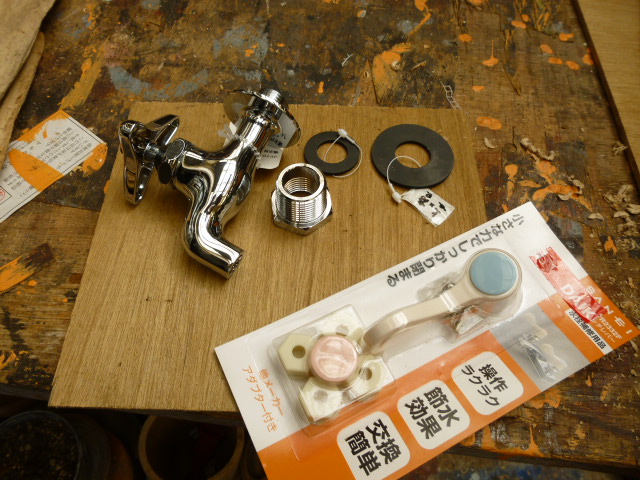 あんたも好きね〜♪そういえば水タンクの水漏れがあったな… 蛇口から水が漏れるんです(T_T) ホームセンターに安く売ってあります 買い替えれば済む話ですが… でも私はこのタンクの形、大きさが非常に気に入ってるとです(^o^) 安定性、車に積みやすい、水量がちょうどいいなど… でも、この商品は現在販売されていませ〜ん(残念) したがって、これを使うためには修理するしかなかとです♪ そうそう、以前この話を村上さん(別名:阿蘇の支配者)にしたときに 「買い替えるのは野満さんらしくない」 「水栓金具を使いやすい奴に替えたらどうですか?」 と言われたことを思い出しました それもそうだな〜と思いなおしまして… よし! 水栓金具を交換しよう<`〜´> さっそくハンズマン(地元のホームセンター)に行きまして 結構な金額です… 蛇口だけで1200円 ハンドルをレバーに交換するために600円 取り付け金具、パッキンなど総額で2,500円くらいかかります 間違いなく新品の水タンクが買えます それも2個くらい(・_・;) そのときです… 「金額の問題じゃなかでしょ…そこにこだわるのが野満さんでしょ」 村上さんの声がしたような気がしました(-_-) そうよね、そこ大事よね… 購入しまして修理です♪ 思ったよりいい仕上がりです 写真のとおりです♪ レバー式です、とても使いよいです 女房に見せました 「あんたも好きね〜」とあきれていました 金額のことは言ってません… 言えば間違いなく切れますから(-_-メ) デビューが楽しみです(^_^)v |