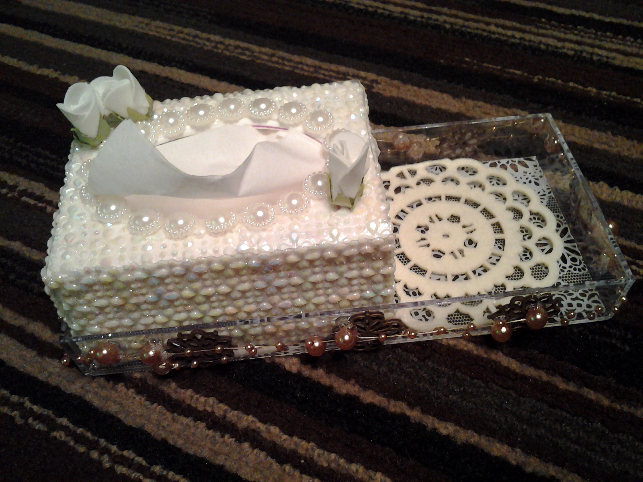 器用なママ(^o^)ママが走り寄ってきました 手元を見るとなにか綺麗な小箱が… よくみるとティッシュペーパーを入れる箱物です(^^♪ いや〜良くできています ママが言うには「材料は百円ショップ」で仕入れたと… 白い花がいっぱいデコレされています それプラス小さいビーズがびっしり(@_@。 こりゃ〜大変な作業だったかと思います 私にはこんな緻密な細かい作業はできません(本当に…) それに私にはビジュアル的なセンスがありませんから(T_T) これは立派な商品ではないかと… 個展をすることがあればママとコラボしたいと思います ママは刺繍をします 器用とは思っていましたが、こんなセンスがあったとは… いや〜今回は頭が下がります ちゅう〜より感動しました じつは子供たちも手先が器用です 親のひいき目でみてもいいもの持っていると思います この器用さはママのDNAだったんですね(゜-゜) 将来、もし機会があれば家族でコラボした個展をしたいと思います こりゃ〜ママには負けられんば〜い(^_^)/~ |