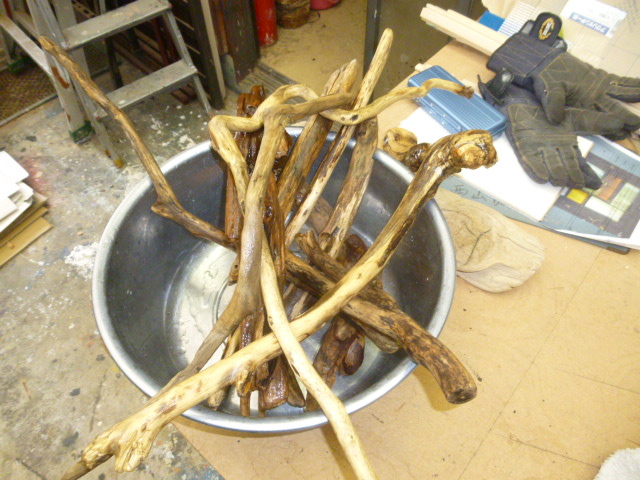 どんなかな…先週からイメージを膨らませていました♪ 候補となる流木をピックアップします まずは丁寧に洗います(汗) 今日はちょっと寒いです… 気になりませ〜ん<`〜´> たわしでごしごし… 隅々まで! 洗い終わったら丁寧にふきあげます まずは骨組みとなる流木を合わせてみます この場合は左右一本ずつです 枠を止めなければならないので微妙な調整が必要です た〜だ止めればいいというわけにはいかんとです(・_・;) 平行、垂直、これを柱にどんな部材を使って支えればいいのか… ごちゃごちゃするのはきらいです(-_-メ) あくまでもシンプルにいかんとですね 主役は色紙ですから(゜-゜) 流木が勝ったらいかんとです 今回使ってみたかった流木があったとです 直角に曲がった小枝の流木です くねくねと曲って面白い形です♪ これを活かしたかったとです 組み立ての難しいところは少ない部材で支え、倒れないようにする 尚且つ、強度を持たせる! すぐ壊れちゃ話にならんとです 二本の流木で支えることにしました 絶妙のバランスです(^^♪ 出来ました♪ いかがでしょうか? あとはガラス屋さんにいってガラスを入れれば完成です ガラスの重みが加わりバランスがどう変わるのか… 私の計算では垂直荷重が加わり、落ち着くとふんでるんですが… 結果は来週です ガラス屋さんは日曜日は休みなんです(T_T) どぎゃんかして平日ガラス屋さんに行かねば… がんばります(^_^)/~ |