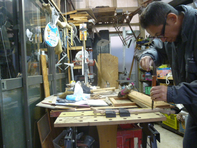 作品制作♪土曜、日曜で連休で〜す♪ 会社は基本週休二日制なのですがなかなか連休はとれません(T_T) でも今週はなんとか休めました… 今日は流木と戯れたいと思います 色紙たてを作ります 今回は色紙を入れる額から作ります なるべく目立たないように細くします 尚且つ、流木に額をいれこむ溝を掘ります ノミで少しずつ彫り込んでいきます 少しでも額が見えないようにと気持ちを込めながら… 基本となる躯体ができました(^^♪ これに流木をかませていきます これがまた自分なりに気を使うとこなんです 主体は色紙です あまり流木が目立ちすぎてもいけません(-_-) 奥行きを出したい… 見る角度によって表情を変えたい… いろんなことを考えながら組んでいきます また強度も考慮しなければなりません 大切なところです 場合によっては試行錯誤しながら一時間くらい考えることもあります なんとかこの二日間で仕上げることができました♪ 今回の作品はいかがでしょうか? |